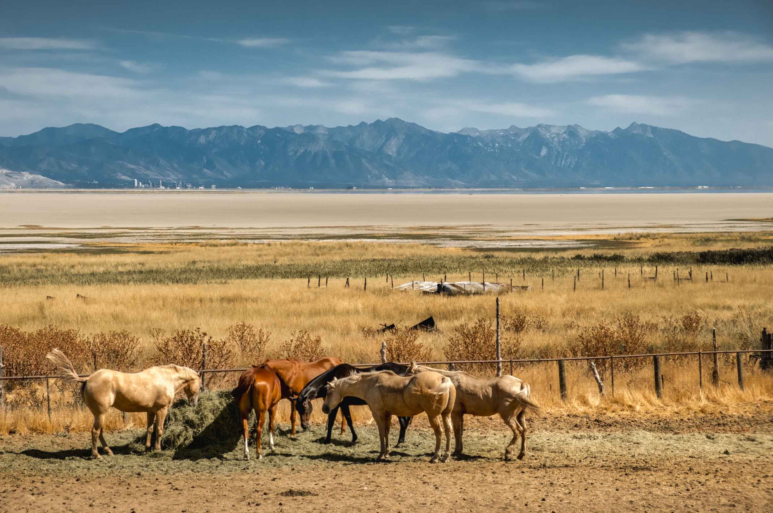We spent the day driving and hiking throughout the area, taking in the dramatic beaches, sail boats on perfectly still water, bison grazing on the plains, antelope running wild, horses feeding near fences with the city and Wasatch Mountains in the distance. A small homestead exemplified the farming that took place on the island generations ago. And after a few hours it was time to end our adventure. This was a day trip dominated by visual drama, so the photographic media below are certainly more effective in capturing the experience. But if you’re ever in Salt Lake City, you should absolutely check out the park in person!