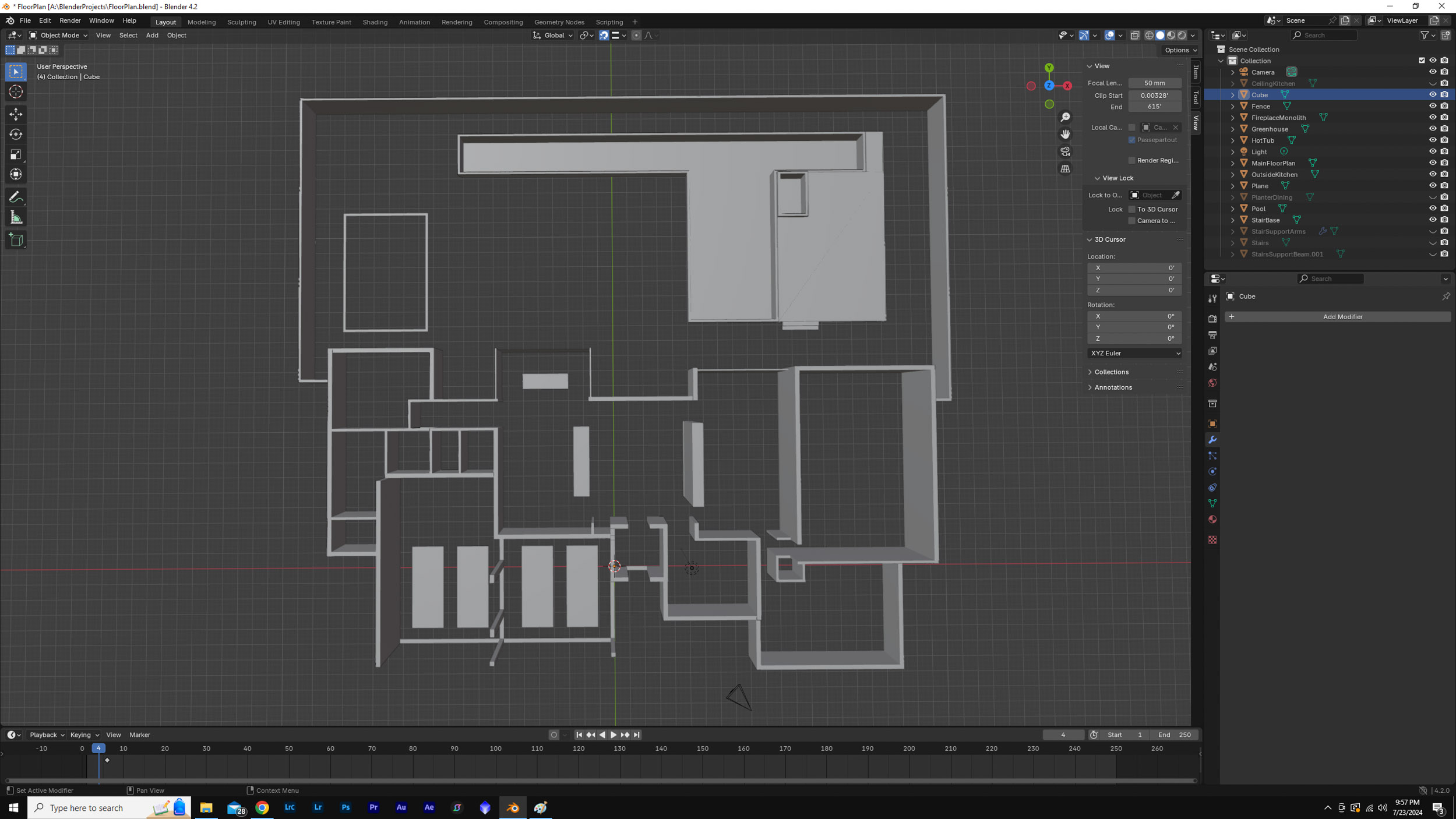 Over the same period of years which saw me gradually contemplating the design of the home you’ll see below, I worked on many projects in which I thought using 3D assets would enhance my storytelling. For example, in several of my travel and adventure videos, 3D maps help to convey the expanse and grandeur of a long journey (as in my Rim to Rim to Rim trek through the Grand Canyon). To create these 3D maps, I’ve had to spend hours, if not days watching YouTube tutorials and reading forum posts, mirroring their instructions click by click to eventually create something that would suffice. The end product has usually been a mere shadow of what I’d originally planned with me lacking the knowledge and skill to fully realize my vision. And even outside of these video projects, I’ve contemplated a few other creative endeavors in which 3D assets either played a significant role, or were the primary medium. And each of those instances the endeavors fizzled out in the ideation stage. Again, I didn’t have the knowledge and skill to move forward. With this background, I’ve always had a plan in the back of my mind to slowly learn 3D modeling, texturing, and rendering.