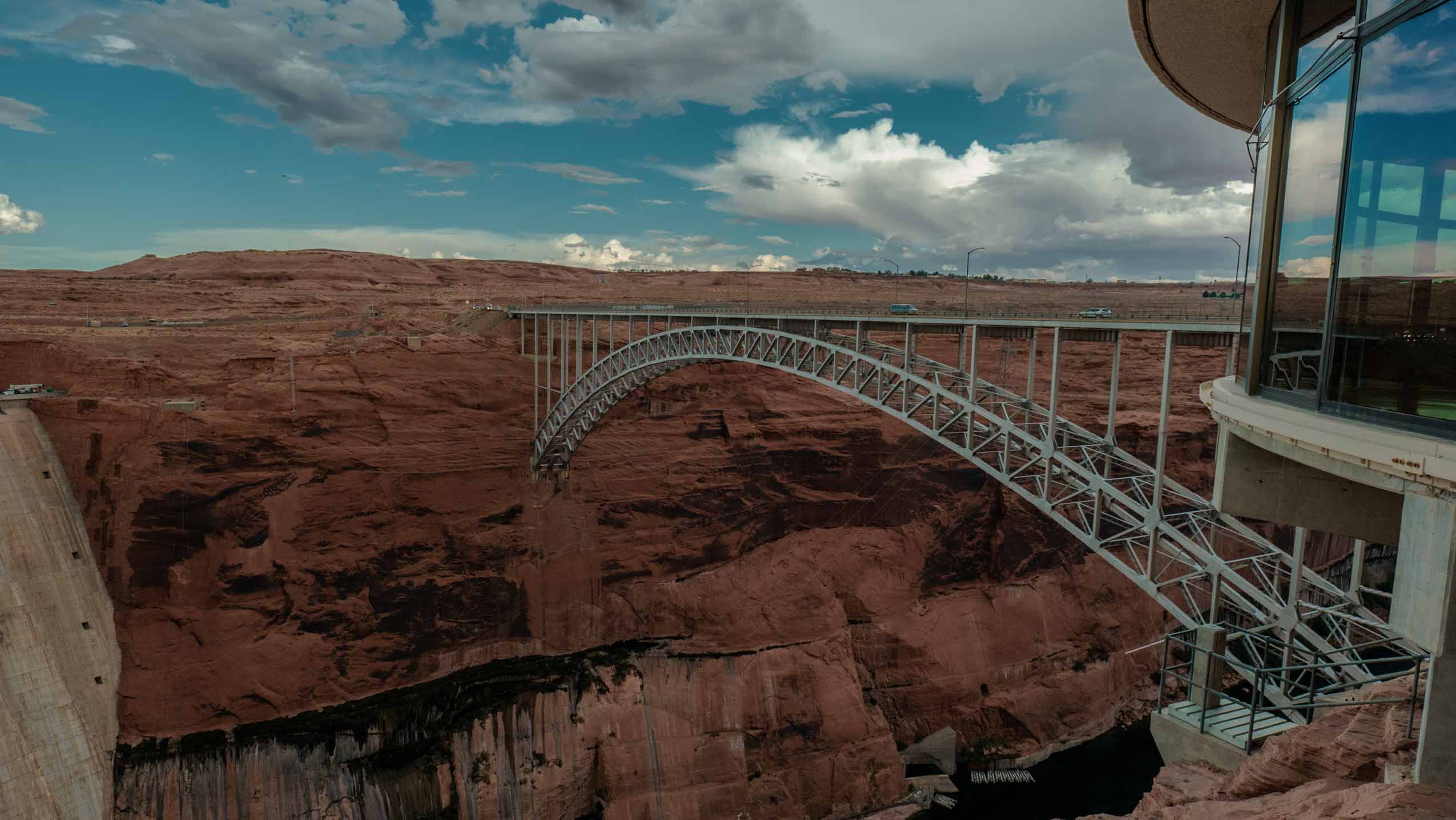 We got flights of beers to sample and finished them off while snacking on the largest pretzel I think I’d ever had. And then we got back on the road toward Kanab. Before we got too far from Page, however, I pulled off the road again just after crossing the Glen Canyon Dam Bridge into the parking lot for the Glen Canyon Visitor’s Center. I had stopped here once before —also on the aforementioned roadtrip to Salt Lake City— and on that trip had only pulled off looking for a place to eat some McDonald’s I bought just a mile or so up the road after I decided against eating while driving. I got out to walk around and stretch my legs and ended up discovering a peaceful little slice of the earth where I looked out over Lake Powell and the surrounding red-orange rock, with the dramatic dark clouds and intermittent lightning of a monsoon-season storm in the distance. The unexpected nature of my encounter with this place gave the experience a connotation of discovery. Since then, passing time has polished this small memory into one I cherish, making this small little parking lot at the end of the Glen Canyon Bridge uniquely special to me. As we walked around the back of the visitor’s center to gaze from the viewing platform at the impressive dam below and to the right, and at Lake Powell out to the left, I remembered my previous special little experience here.