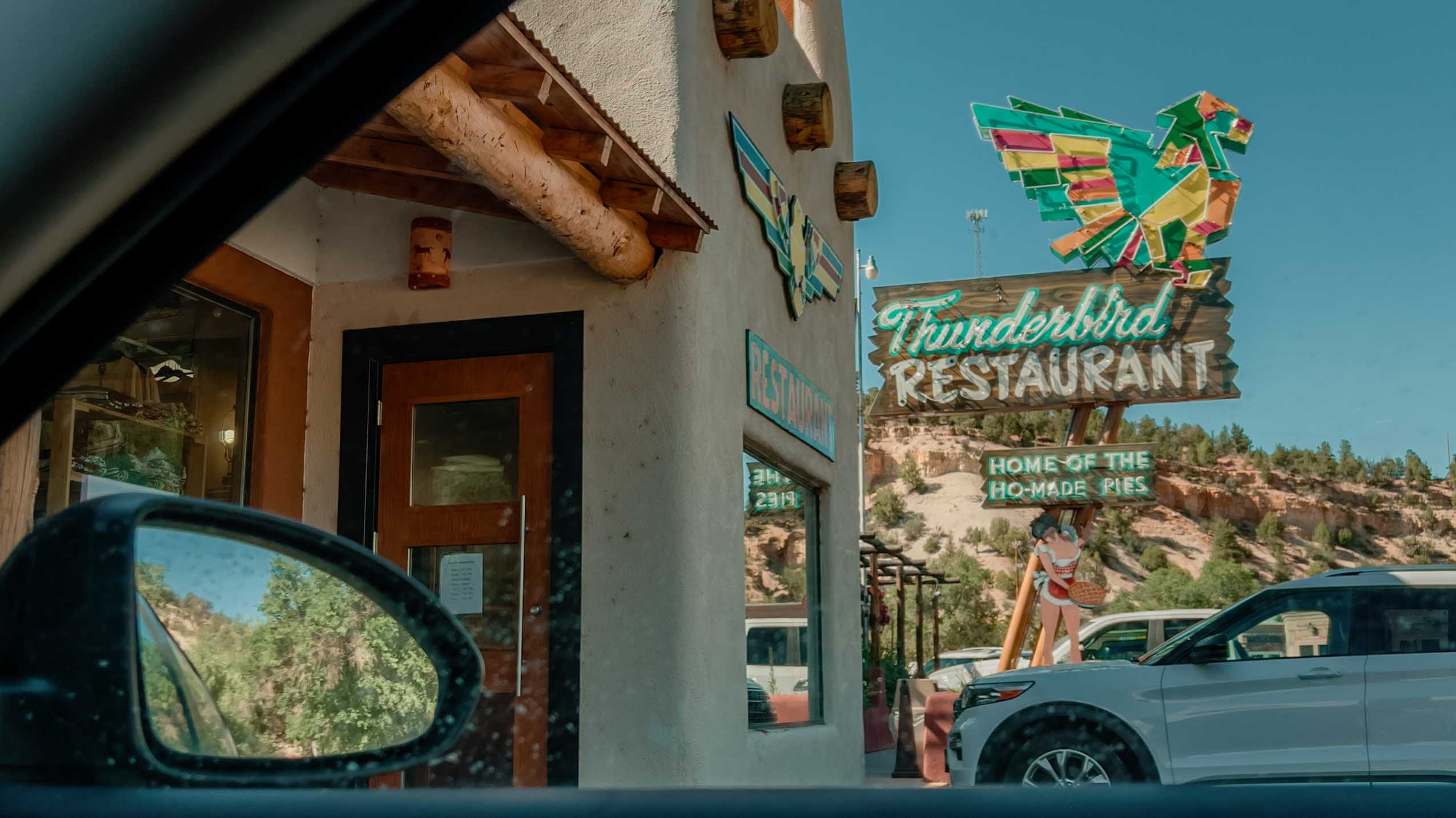 Another hour or so passed and we made it to rim where we wer again rewarded with some fantastic views. And from here we hiked along the rim for what seemed like an eternity, but what in reality was only about a mile, back to the car. It was at this point that we had a decision to make: We either stay another night nearby and drive home in the morning, or we commit to an eight hour drive to Tucson tonight. It was currently about 3pm, meaning that at the earliest, we’d make it back a little after 11pm. Not wanting to make a decision on an empty stomach, we headed out of the park and south to Mount Carmel Junction, a tiny little town at the intersection of roads leading to Bryce Canyon and Zion, for a meal at the iconic Thunderbird Restaurant.