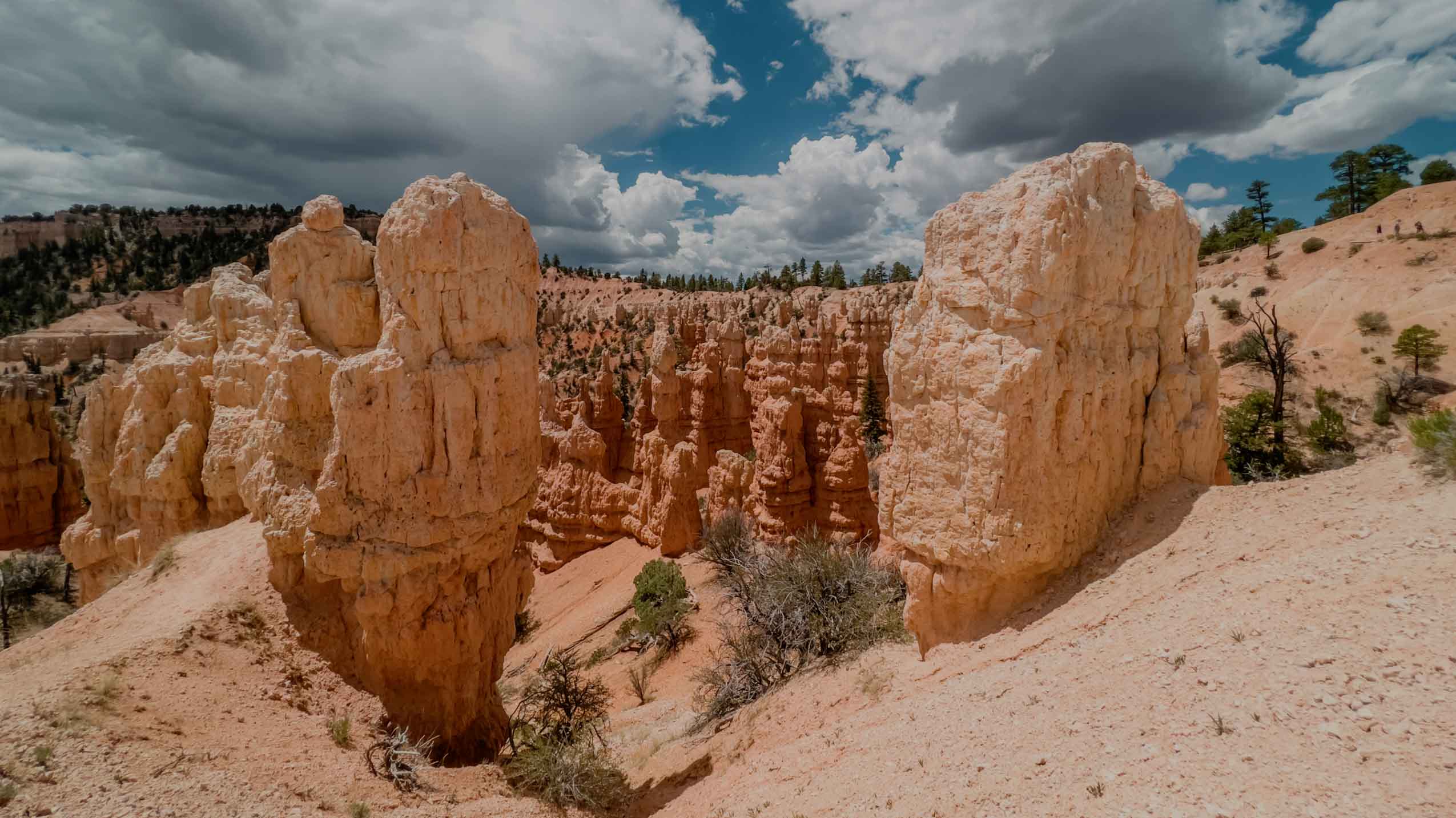 Where we stood at the beginning of the trail was an elevated shelf of land, similar to the south rim of the Grand Canyon. And as we hiked, we would first descend down from this shelf reaching our lowest elevation at about the halfway point. We’d then continue along the loop back up to the shelf of land, but about a mile north of our starting point, leaving us to hike this distance back to our car. And along the route, we’d be constantly surrounded with the iconic rock formations for which Bryce Canyon National Park is known.