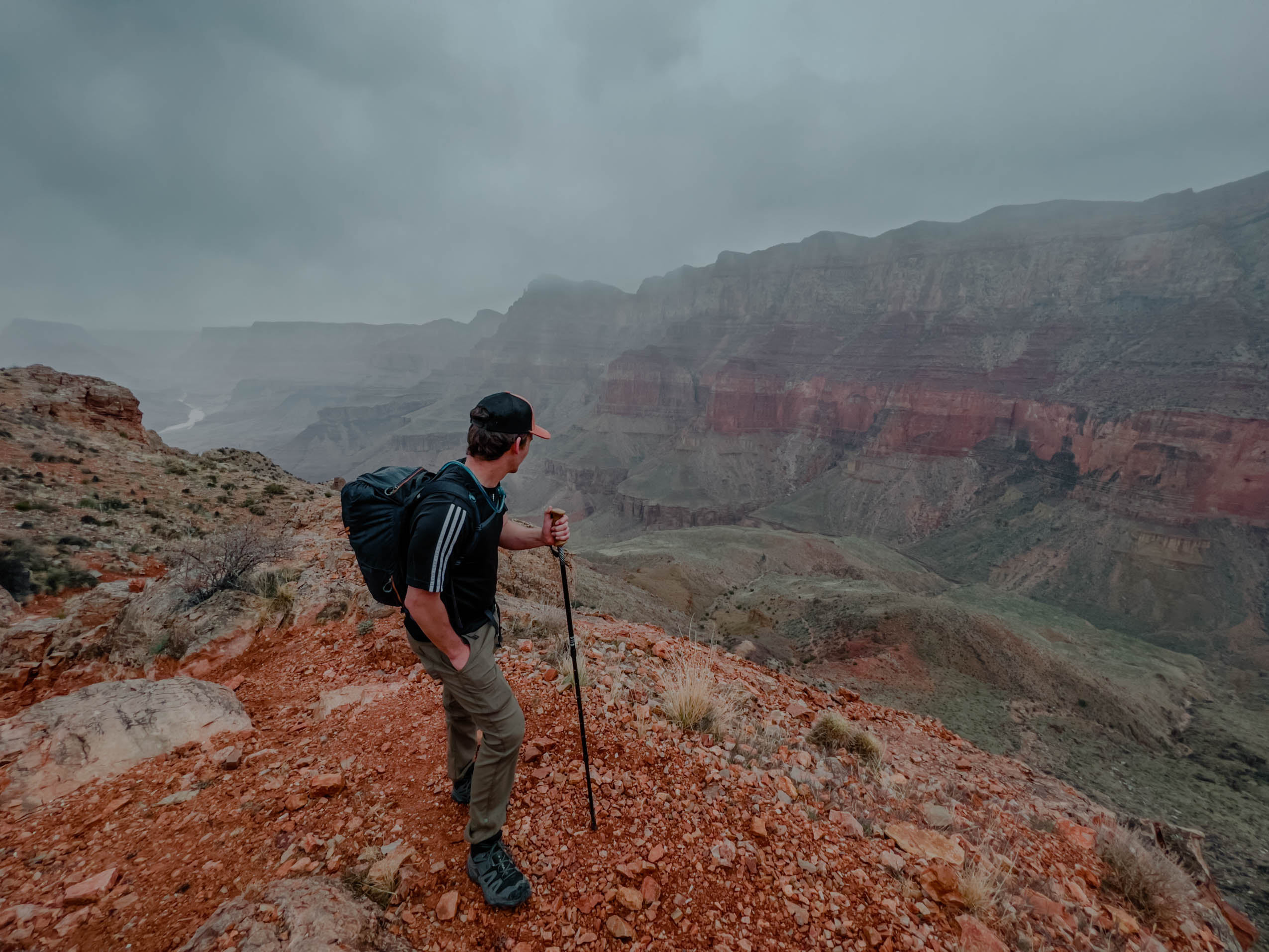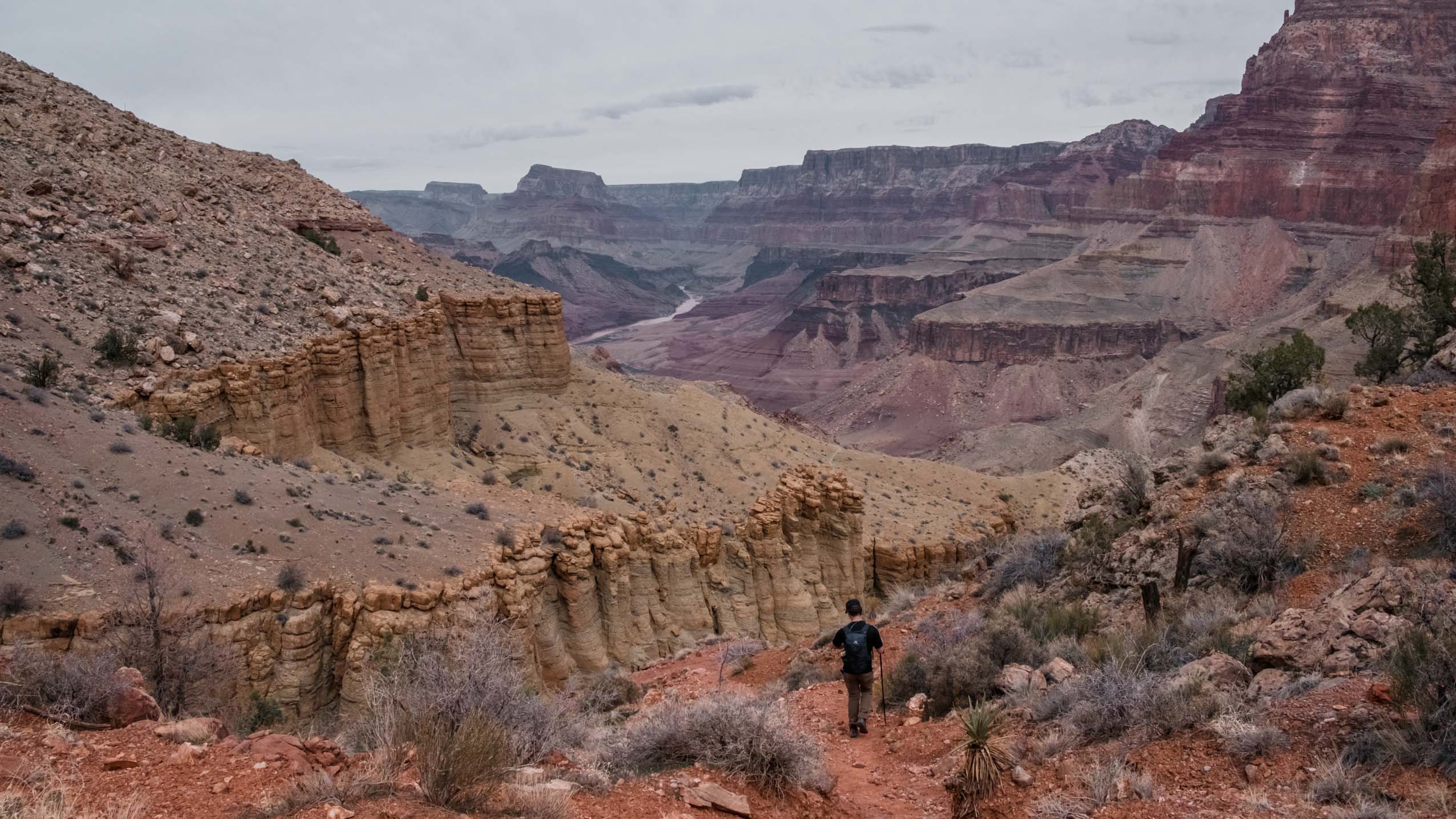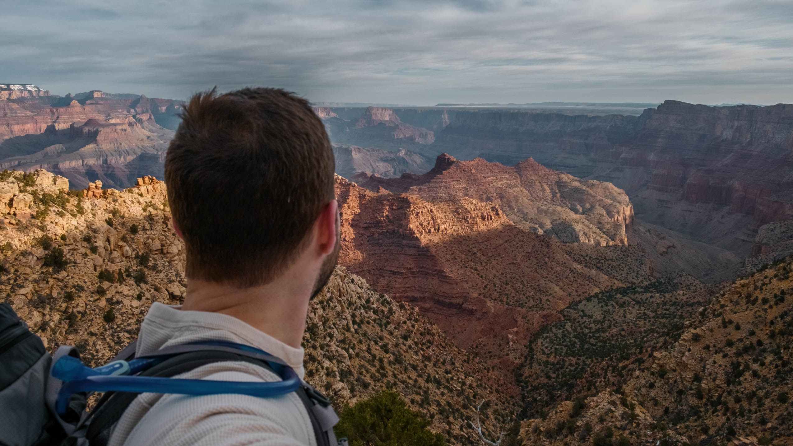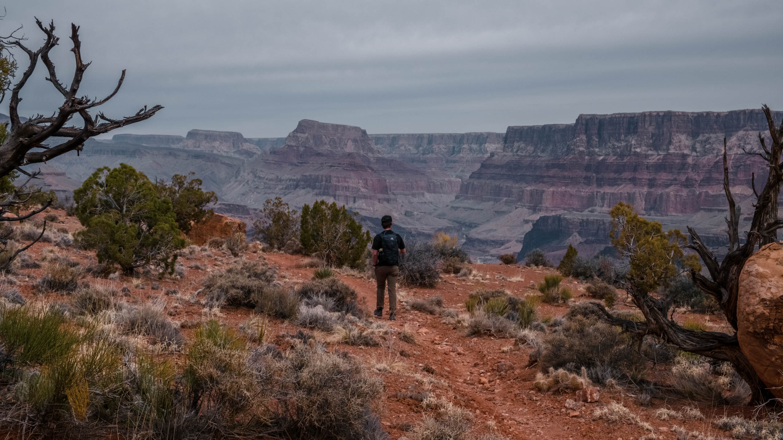 The Tanner Trail is one of the Grand Canyon’s lesser traveled routes, starting from the eastern part of the South Rim away from Grand Canyon Village and more popular Corridor trails like Bright Angel and South Kaibab. In fact, the Tanner Trail is not officially maintained by the park service, only staying somewhat defined as a trail by the few hikers who traverse it. We’d decided on this trail because I had hiked the Corridor trail system a few times already, and the Tanner Trail presented a new challenge. Whereas most people simply hike the Tanner trail going down as a part of the Escalante Route, we were planning on hiking the trail down to the river and back up in a single day, a 14.3 mile round trip with about 5,400 feet of elevation loss/gain. I convinced myself this was a good idea having done the similarly long South Kaibab trail from rim to river and back a couple years earlier. What I didn’t appreciate, however, was just how different the Tanner Trail would be relative to the maintained, four-foot-wide South Kaibab trail.