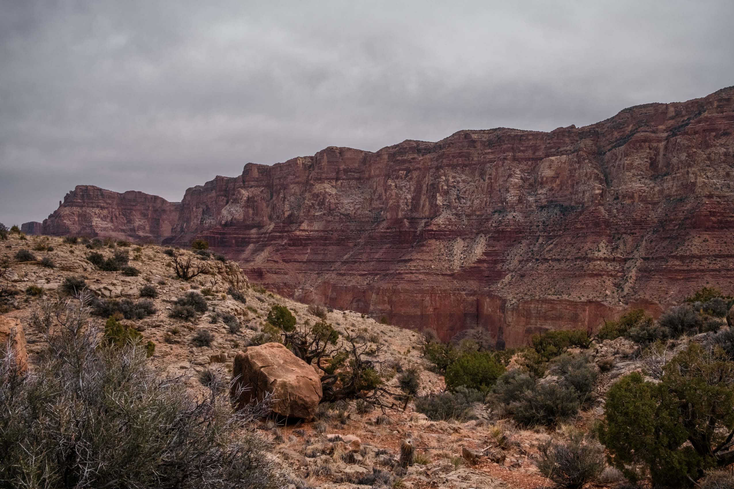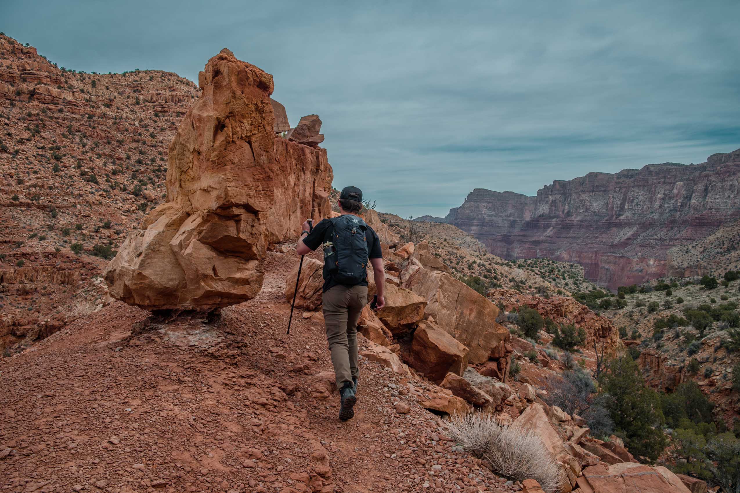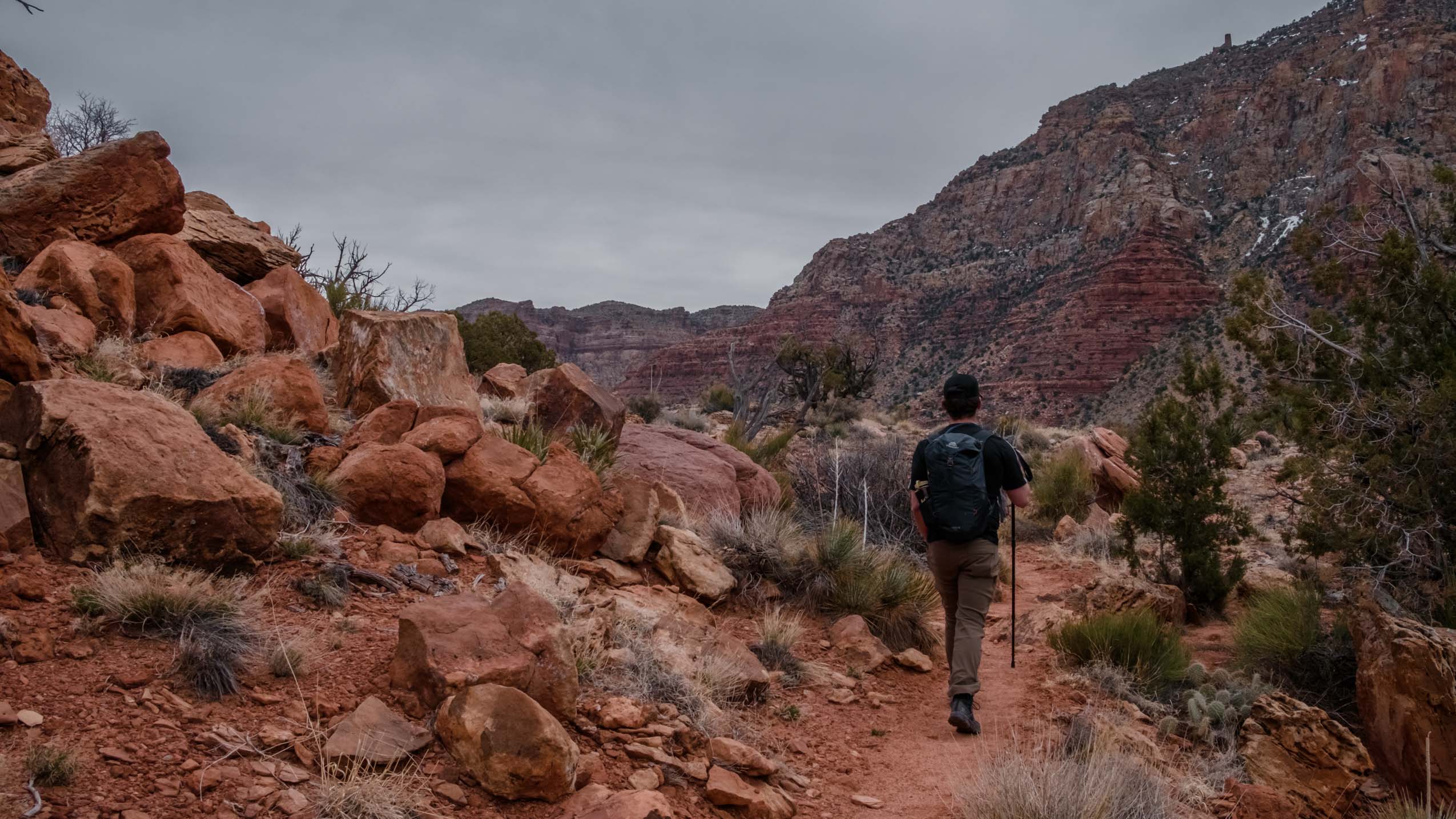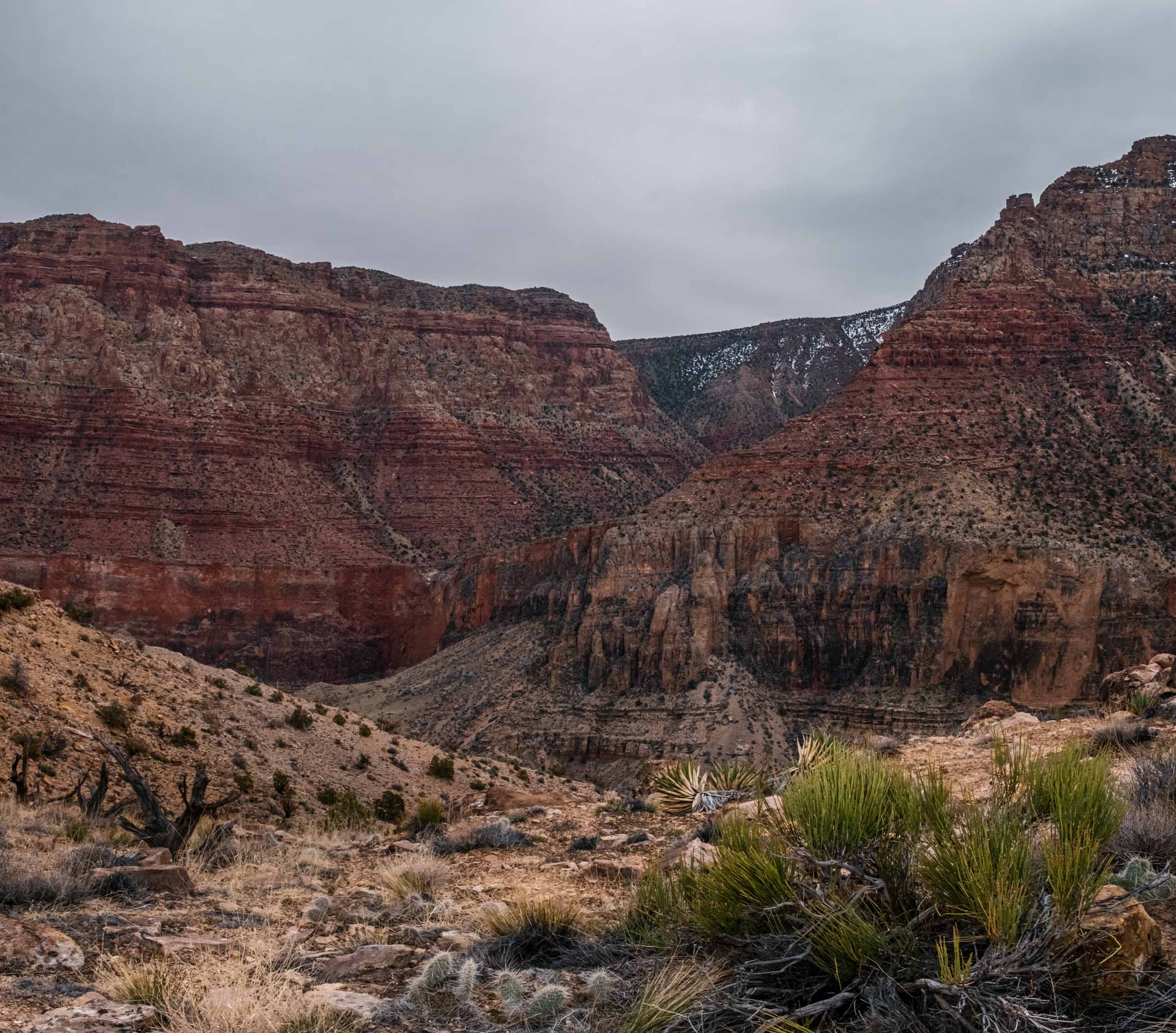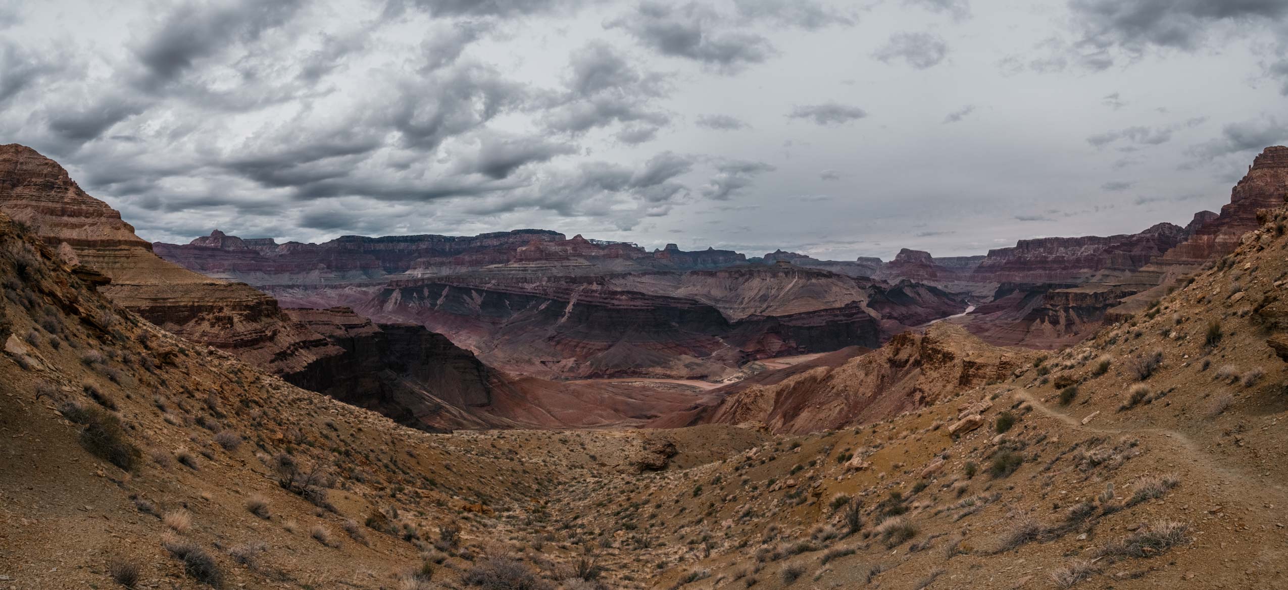 The Tanner Trail is one of the Grand Canyon’s lesser traveled routes, starting from the eastern part of the South Rim away from Grand Canyon Village and more popular Corridor trails like Bright Angel and South Kaibab. In fact, the Tanner Trail is not officially maintained by the park service, only staying somewhat defined as a trail by the few hikers who traverse it. We’d decided on this trail because I had hiked the Corridor trail system a few times already, and the Tanner Trail presented a new challenge. Whereas most people simply hike the Tanner trail going down as a part of the Escalante Route, we were planning on hiking the trail down to the river and back up in a single day, a 14.3 mile round trip with about 5,400 feet of elevation loss/gain. I convinced myself this was a good idea having done the similarly long South Kaibab trail from rim to river and back a couple years earlier. What I didn’t appreciate, however, was just how different the Tanner Trail would be relative to the maintained, four-foot-wide South Kaibab trail.