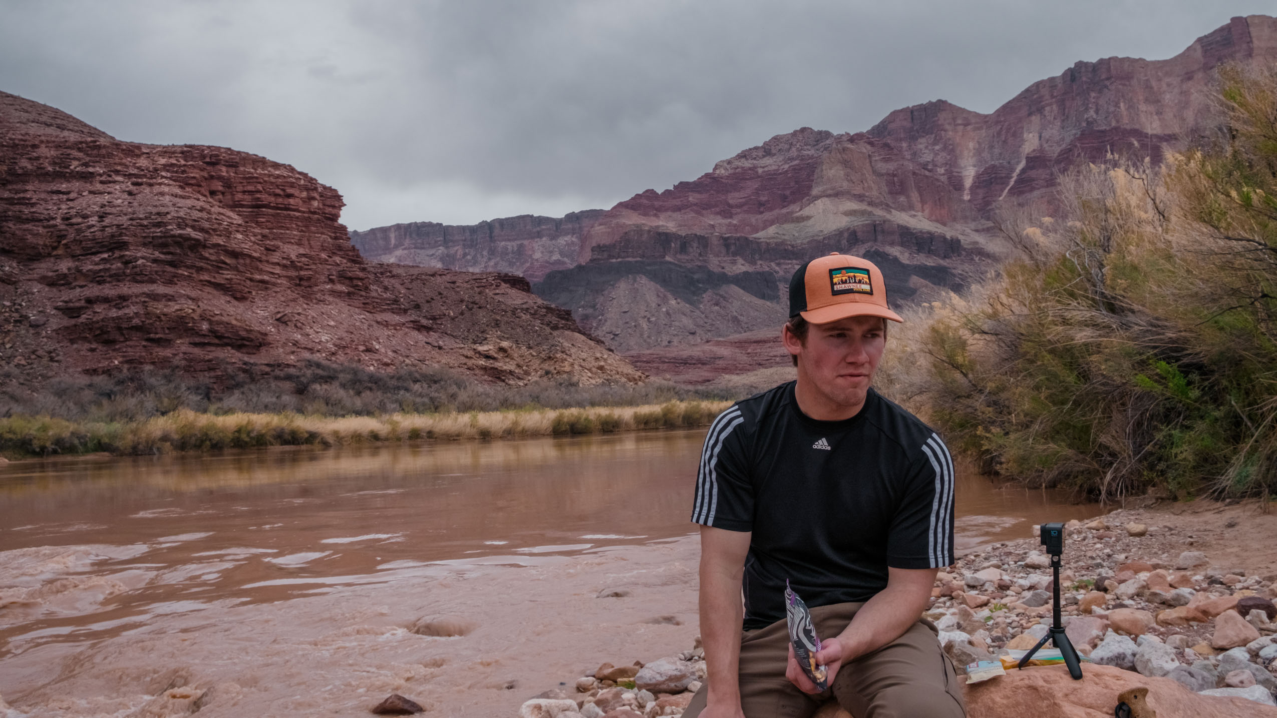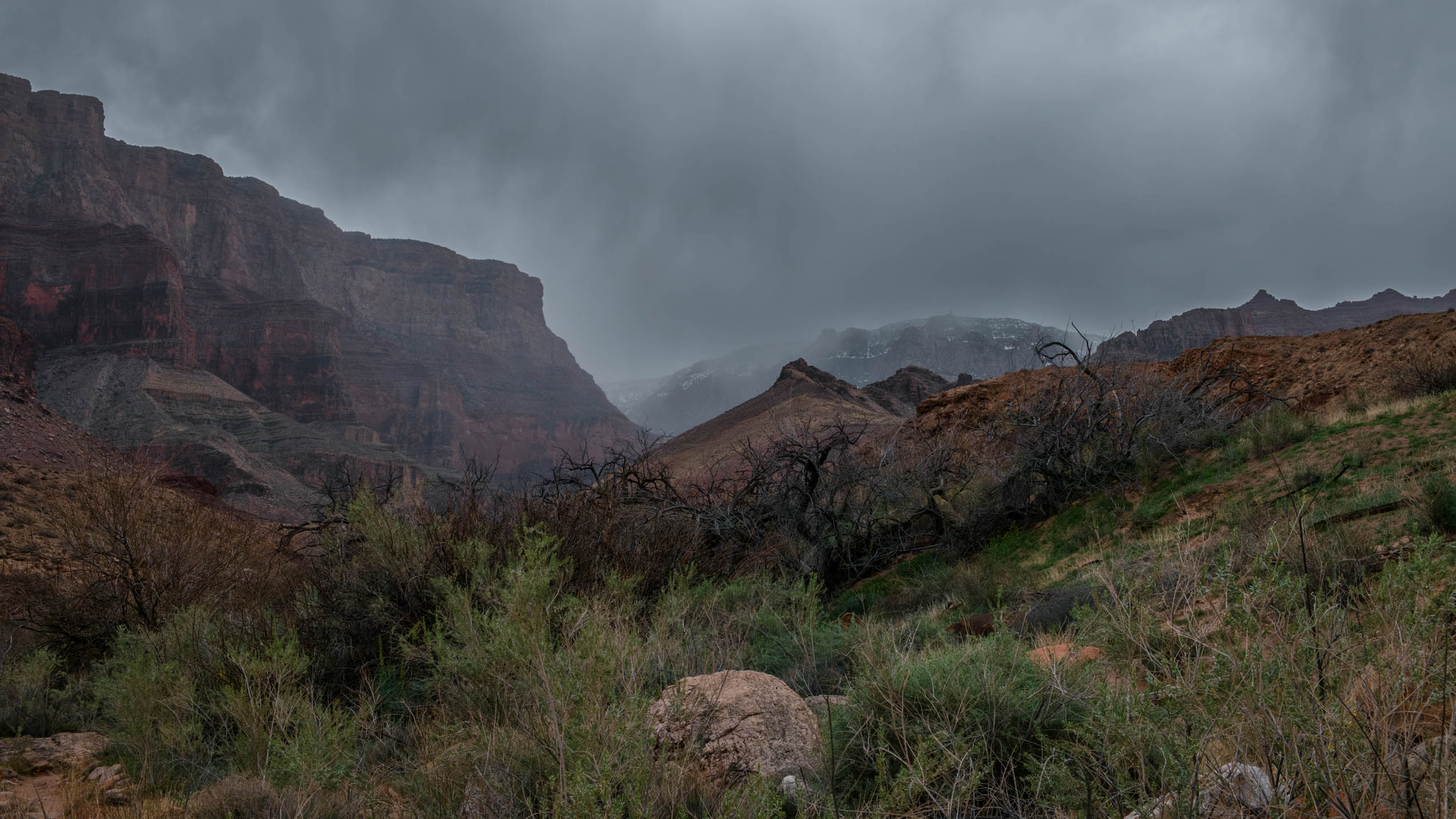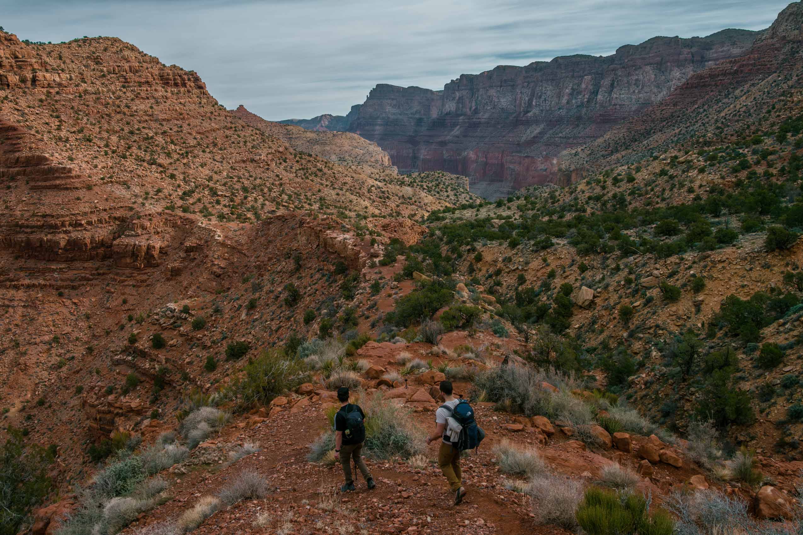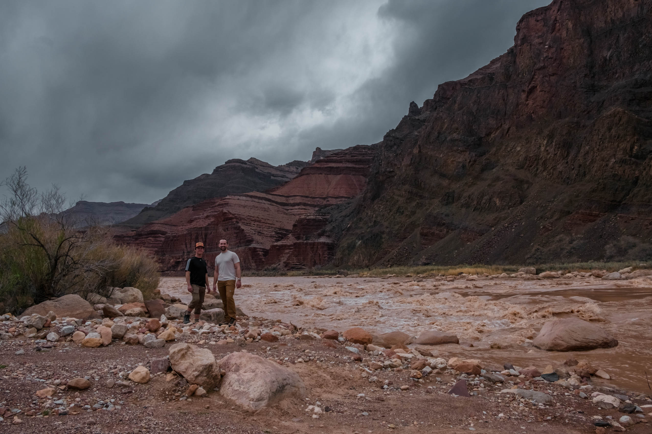 The next few hours of hiking could be summed up as a constant descent down intermittently sketchy terrain broken by absolutely stunning views of this rarely traveled portion of the canyon. Our progress had been slower than expected. It seemed that every fifteen minutes we’d readjust our expected arrival time back at the South Rim later and later. At one point we almost decided to turn back so we weren’t hiking up the most treacherous sections of trail in the dark, but the pull of the river got the best of us and we continued further down. We eventually reached the river at around 2:30pm after hiking for seven hours. If we spent just a half hour admiring the beauty at the bottom before turning back, we’d reach the trailhead at 10pm assuming we kept the same pace going up as we had going down. Of course, that wouldn’t happen. So, we let go of all expectations and adopted a mindset of indifference. We’d move as safely as we could back toward the rim, letting the journey take as long as it did.