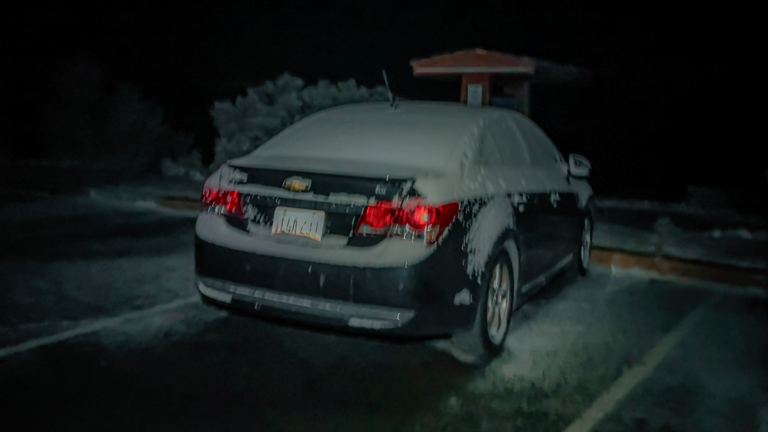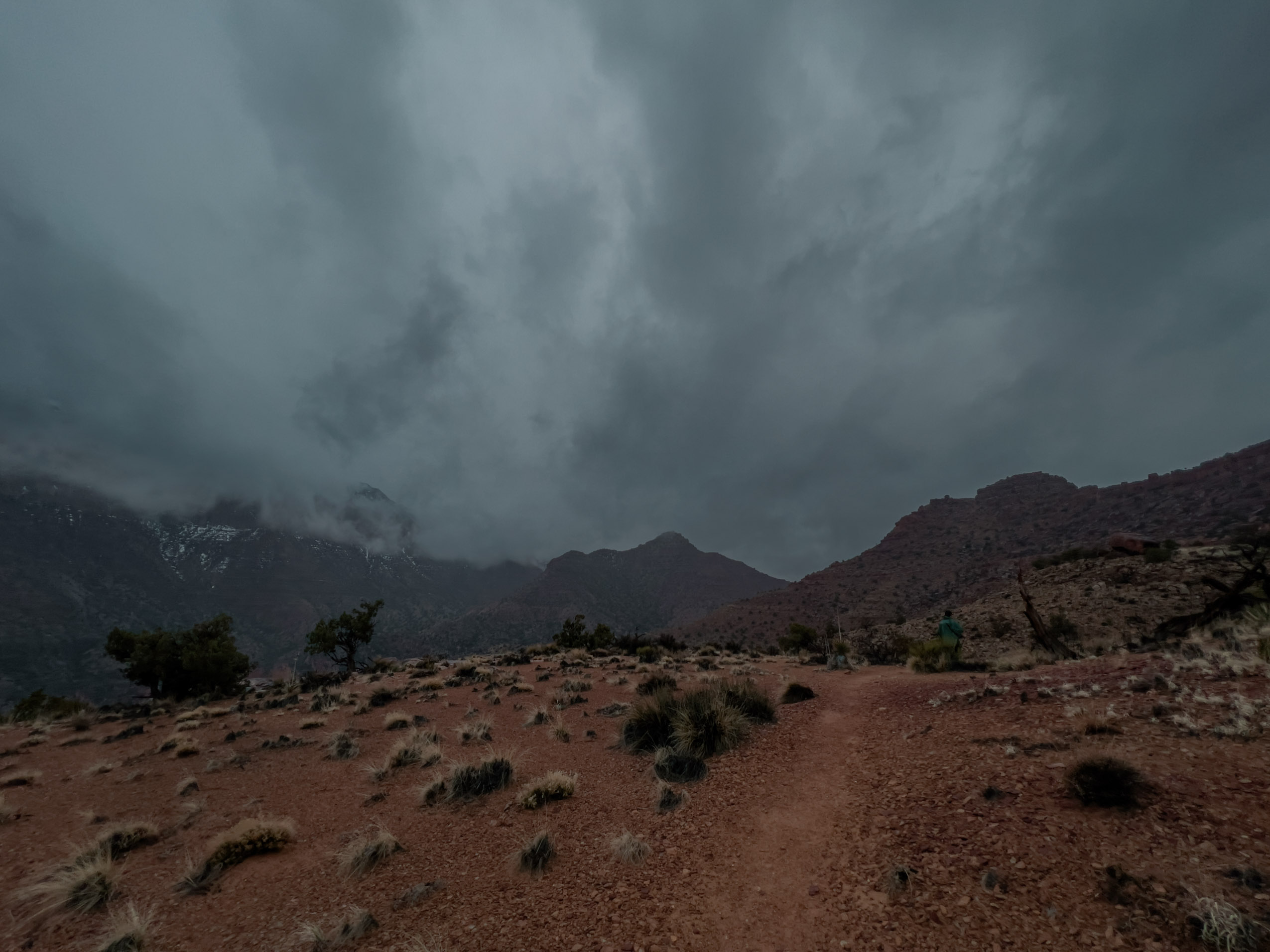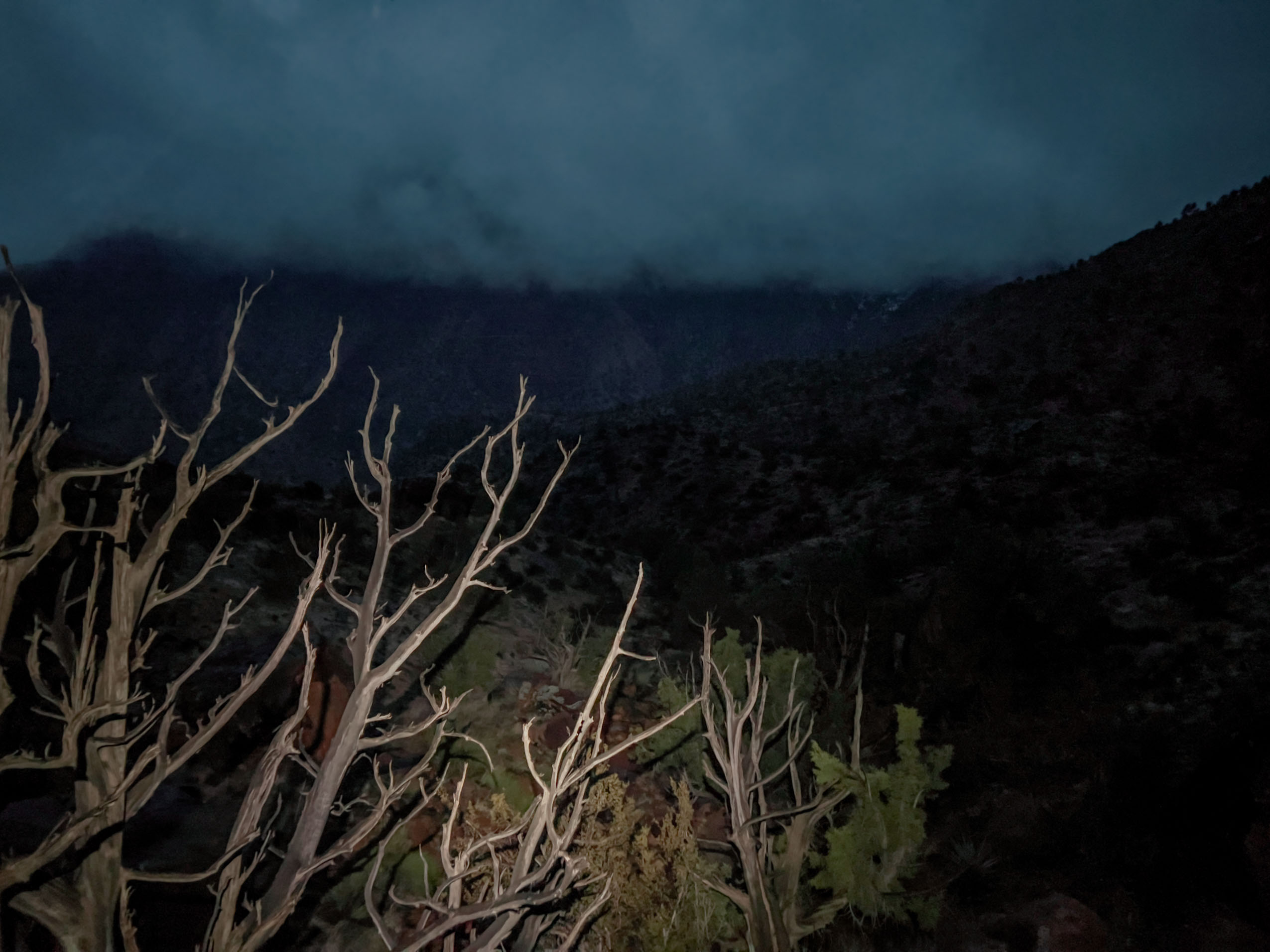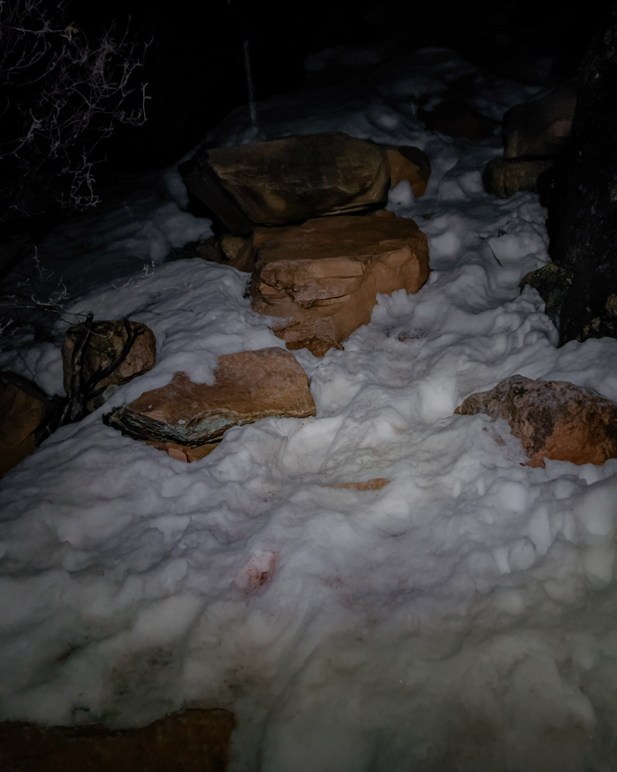 As we walked back to the parking lot from the trailhead, a park ranger serendipitously drove by and stopped to see how we were doing. From his perspective he saw a couple hikers limping along the road in the snow-rain at 11:30pm. He was right to be concerned. I vividly remembered him asking “You guys plan on being out this long?” I simply replied, “Not exactly.” He told us that our planned exit out the eastern road of the park was closed, but that he’d go up ahead and open it for us. If we hadn’t seen him, we would’ve been stuck in Tusayan for the night. Instead, we drove two or so hours to Page, AZ, where we started the next day’s adventures.