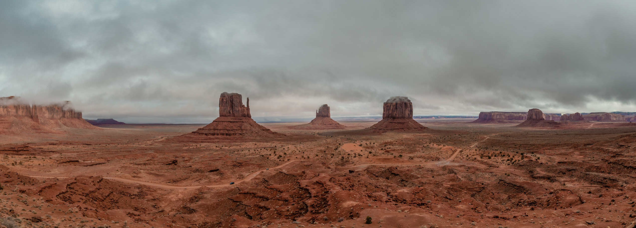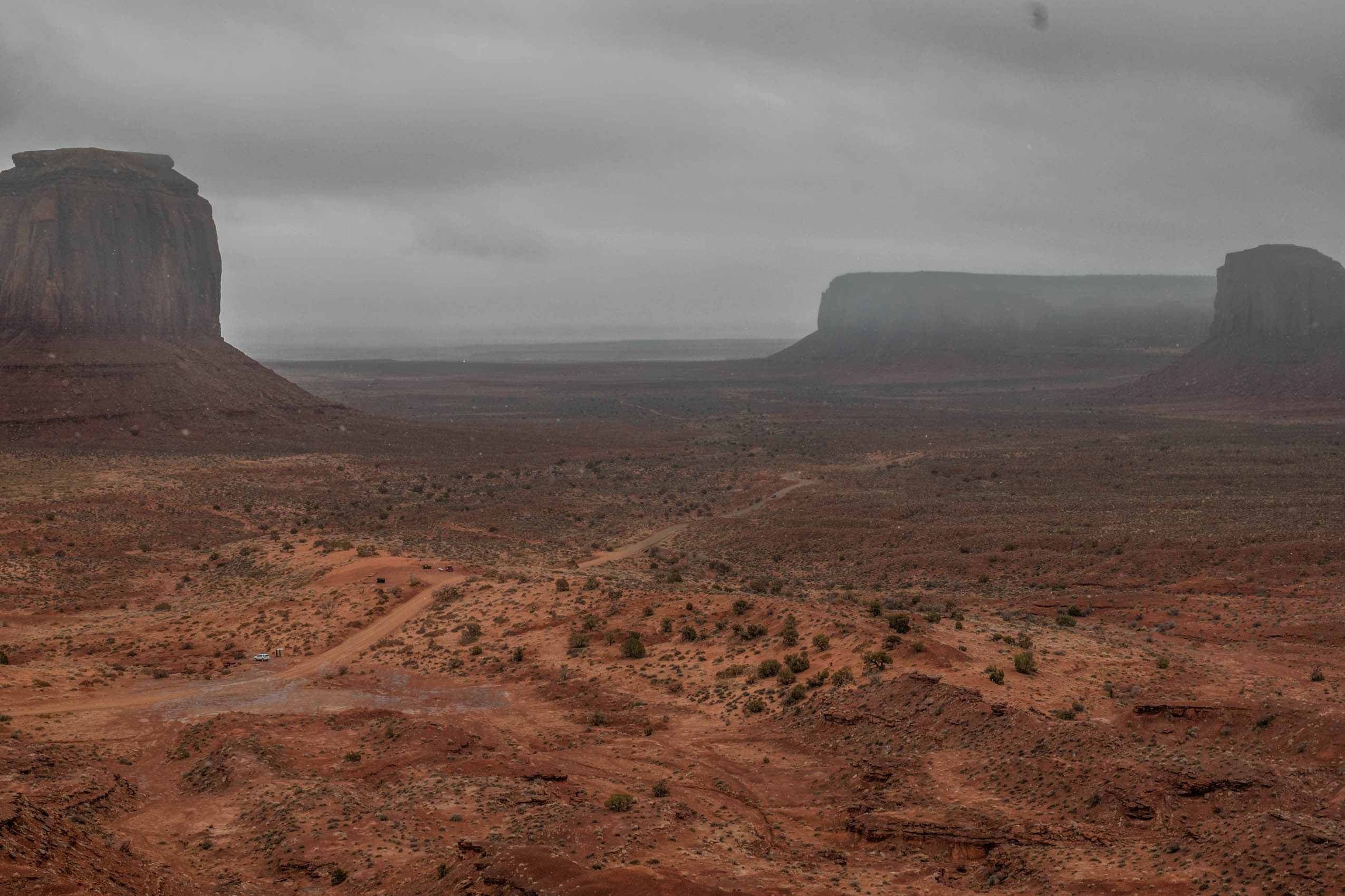 Whereas the day prior had presented questionable driving conditions, today’s route would traverse lower elevations than those around Flagstaff. So, after another early morning wakeup and drive out of Flagstaff, the snow faded away and we were left driving through the picturesque northeastern part of Arizona. On the agenda for today was a stop at Monument Valley before finishing the drive north to Moab.