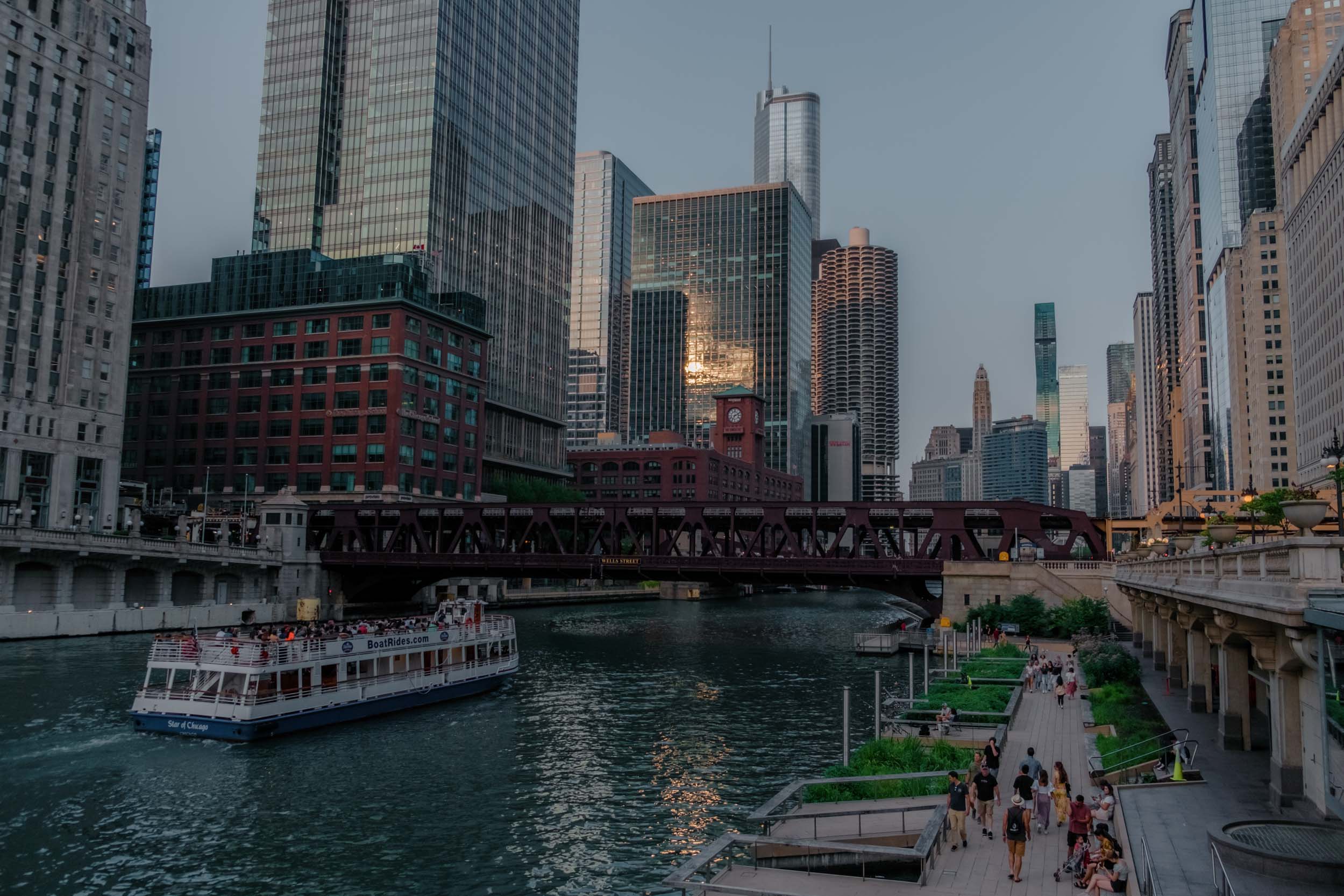 Waking up on Saturday morning, we immediately headed out on foot to explore as much as we could before the wedding later that day. This day was really just about immersing ourselves in the city to get a feel for its character. We strolled down the famous Riverwalk with buildings towering overhead in all directions, and eventually veered south down State Street. Up to this point, we’d passed probably 5 Dunkin Donuts. And now, my will to resist any form of donut vanished, so we made a quick stop for some sugary carbohydrates. With a donut down the hatch and coffee in hand we strolled past the iconic Chicago Theater, its red sign glowing above our heads. From here, we made our way to Millennium Park, the home of Cloud Gate (The Bean). For some reason I’d expected this mirrored sculpture to be a bit bigger, but it was impressive nonetheless. We weaved in and out of the conglomerates of people all vying for a perfectly framed selfie, stood under it for a bit, and then continued through the park. We passes a public group workout under the metal arcs at the back of the Pritzker Pavilion, and then passed the stage of the pavilion –with folded and bent metal face instantly recognizable as a Frank Gehry design– before continuing north out of the park toward Navy Pier. We walked the entirety of the pier, taking in the sights of all types of boats floating on still waters dwarfed by skyscrapers in the background. And then, we headed back to the west. It was approaching the early afternoon, signaling lunchtime, when we fortuitously came across Portillos. No touristy trip to Chicago would be complete without one of their famous hotdogs (or two in my case), so we stopped for a quick bite to eat. With our stomachs full, we made our way back to our hotel to get ready for the wedding.
